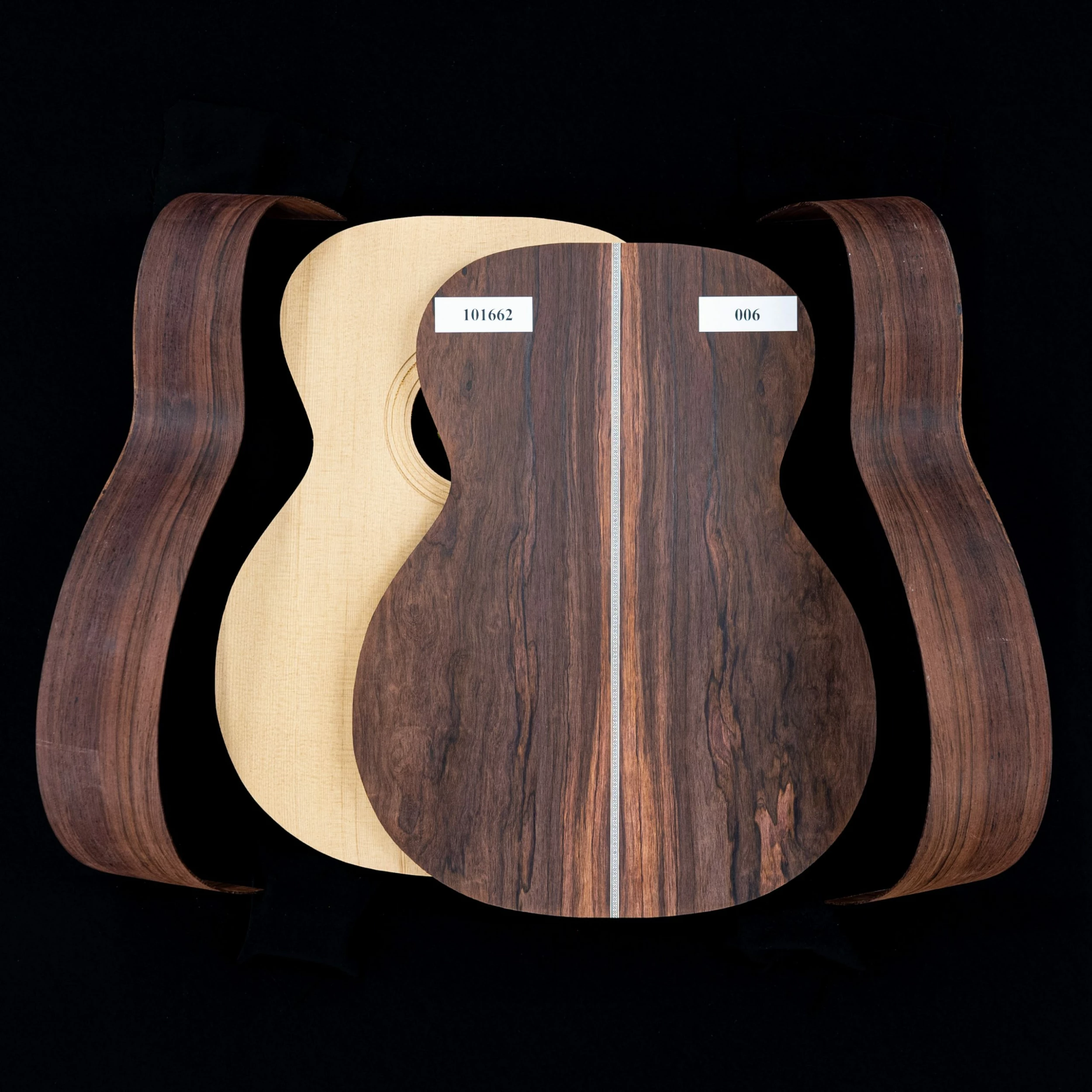 For this special kit, the Red Spruce top has been torrefied. Torrefied woods give new guitars a head start on that rich, booming “played-in” tone. The change is notable: builders have reported improved tap tone, greater strength, and lighter weight—just like a well-aged vintage guitar.