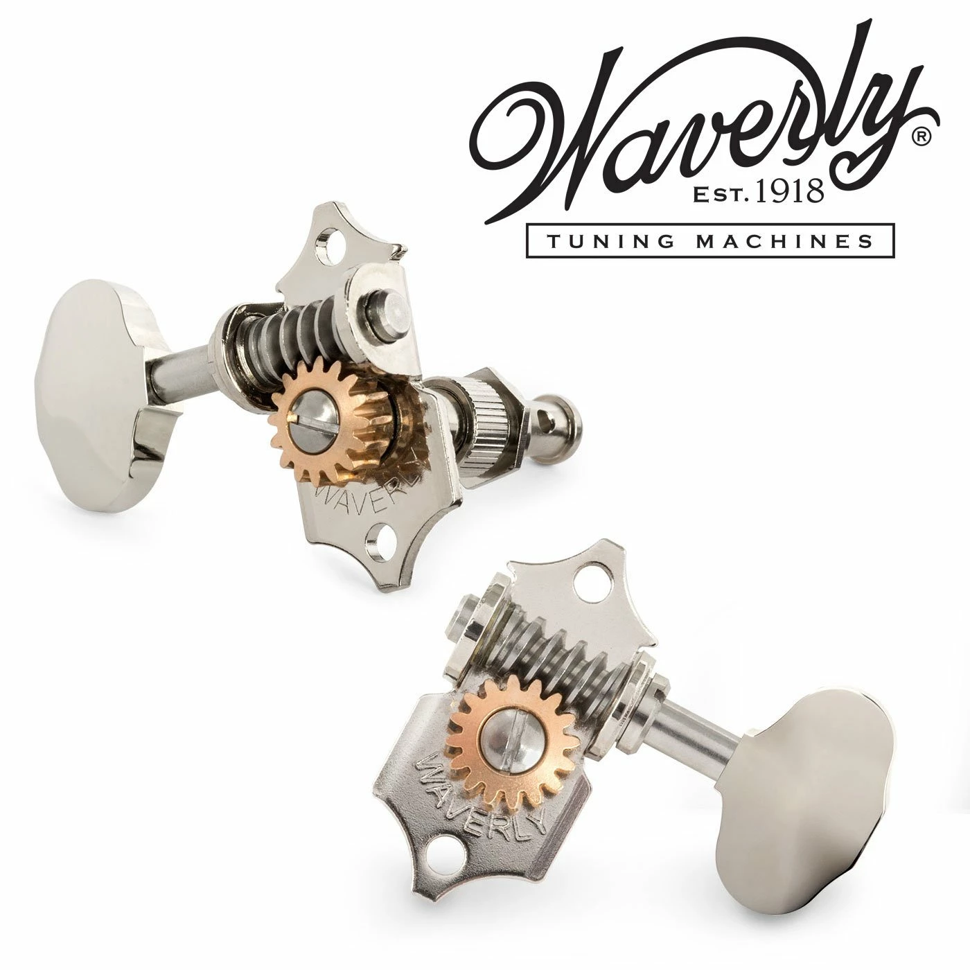 - Waverly Tuning Machines with Bright Nickel Butterbean knobs