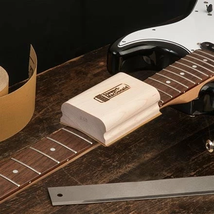 We make these hardwood blocks for use with Stikit Abrasives, to radius a fretboard quickly, accurately and without guesswork.