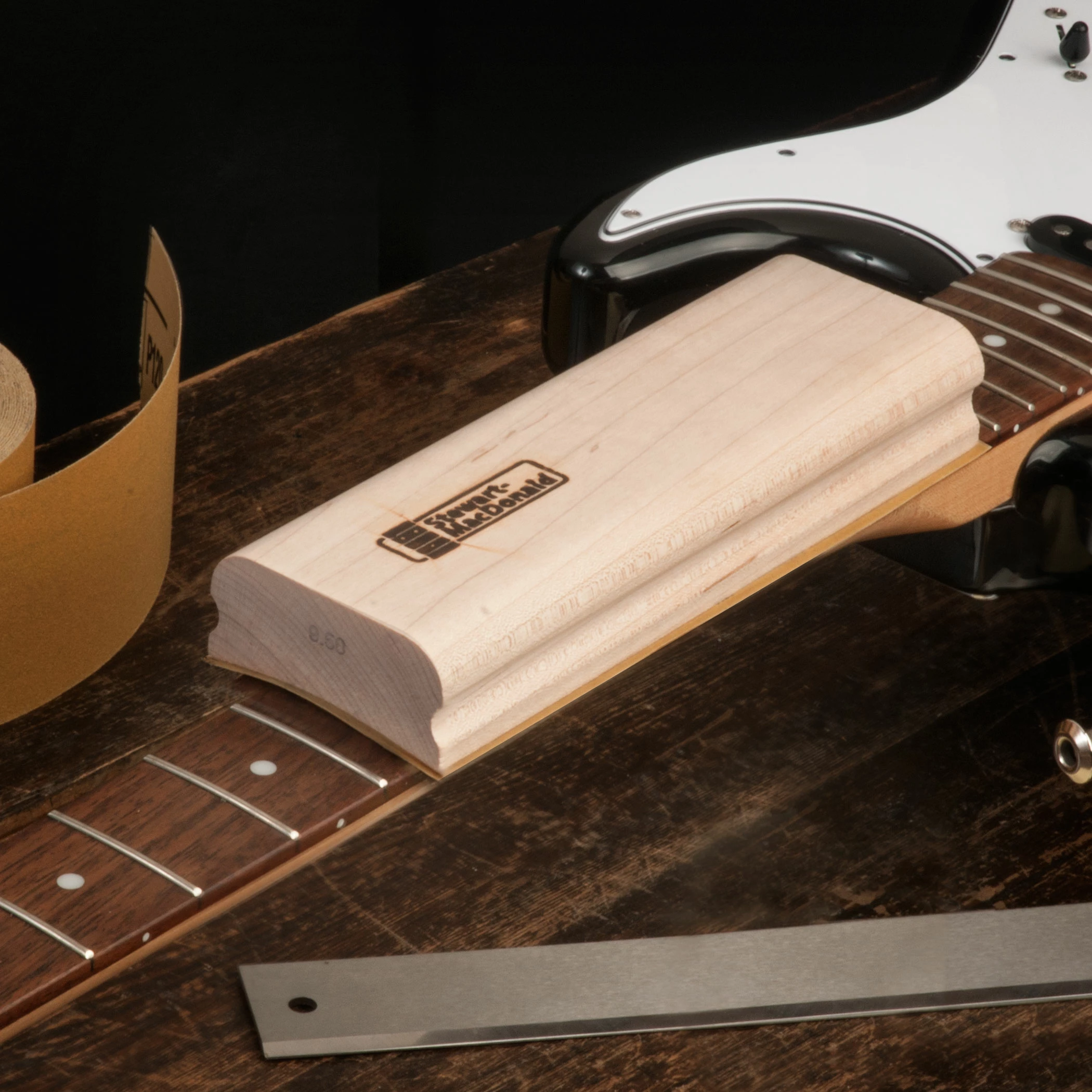 We make these hardwood blocks for use with Stikit Abrasives, to radius a fretboard quickly, accurately and without guesswork.