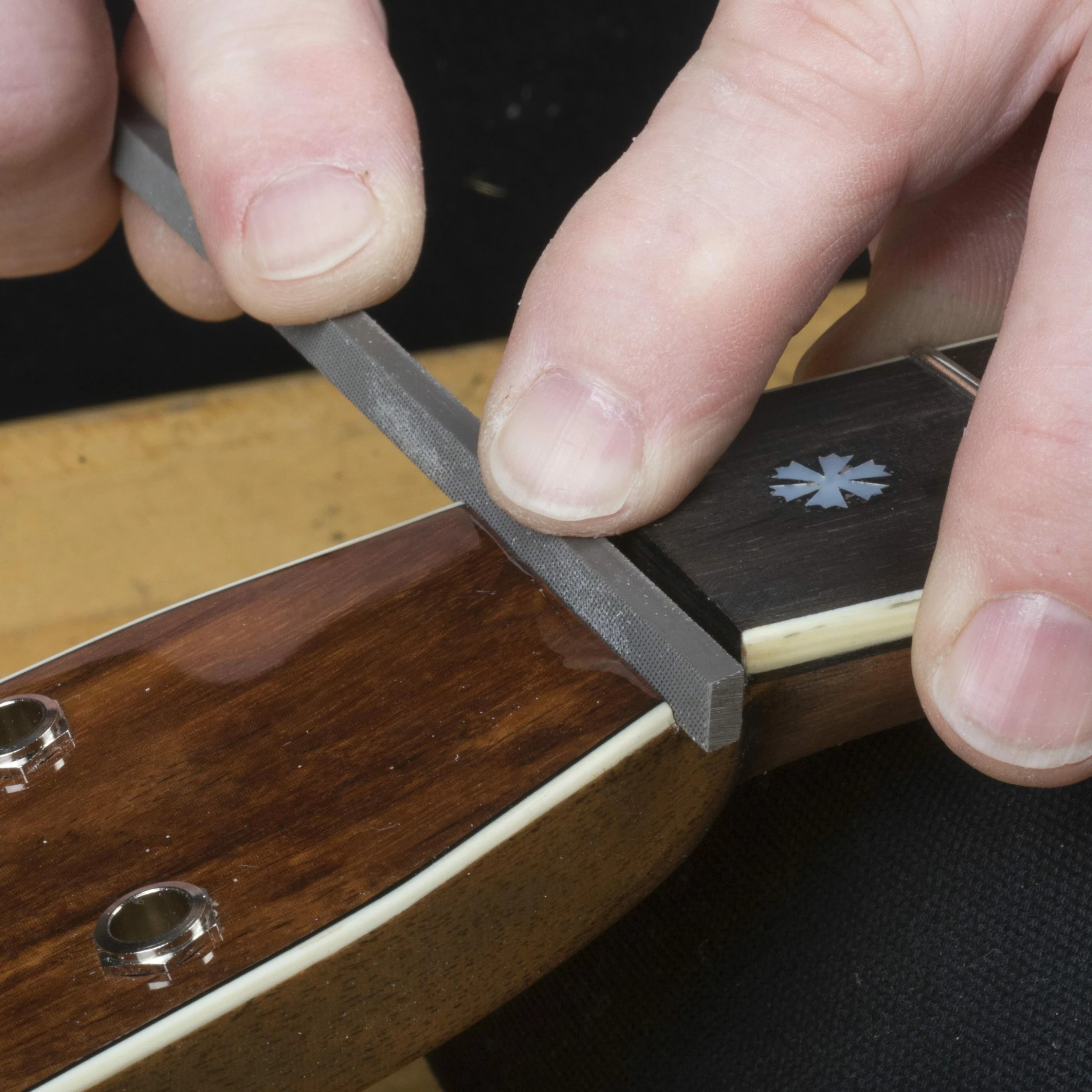 As a bonus, flip the file around and it works great for cleaning the end of the fretboard without altering the bottom of the nut slot itself. This file helps you avoid the whole mess of filing, checking, and then filing some more. With a few quick swipes, your nut slot will be dialed in and ready to go!