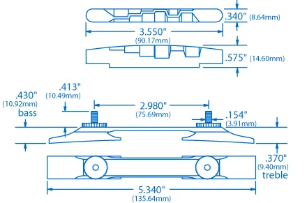 Fine quality machined and polished bridge, with contoured base, nickel-plated posts and thumbwheels for height adjustment.