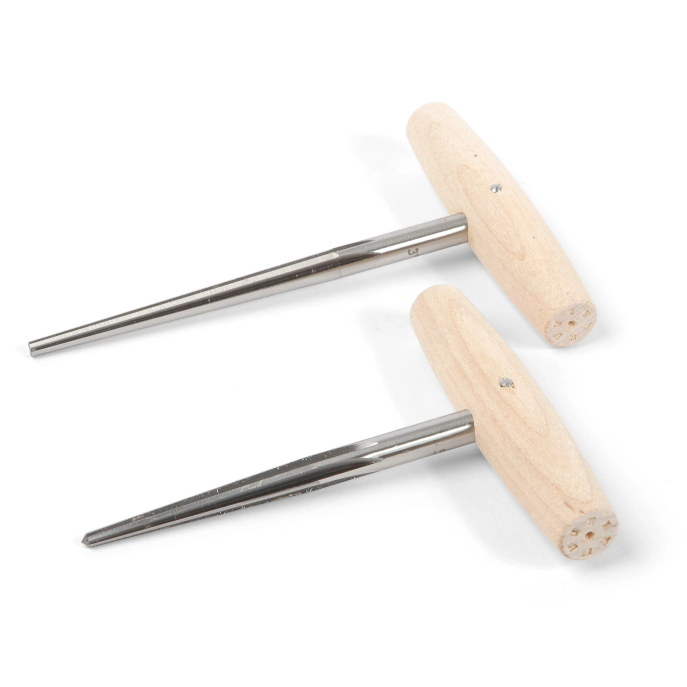 Accurate holes for a better fit! Our special wooden-handled steel reamers properly taper the holes for bridge pins.