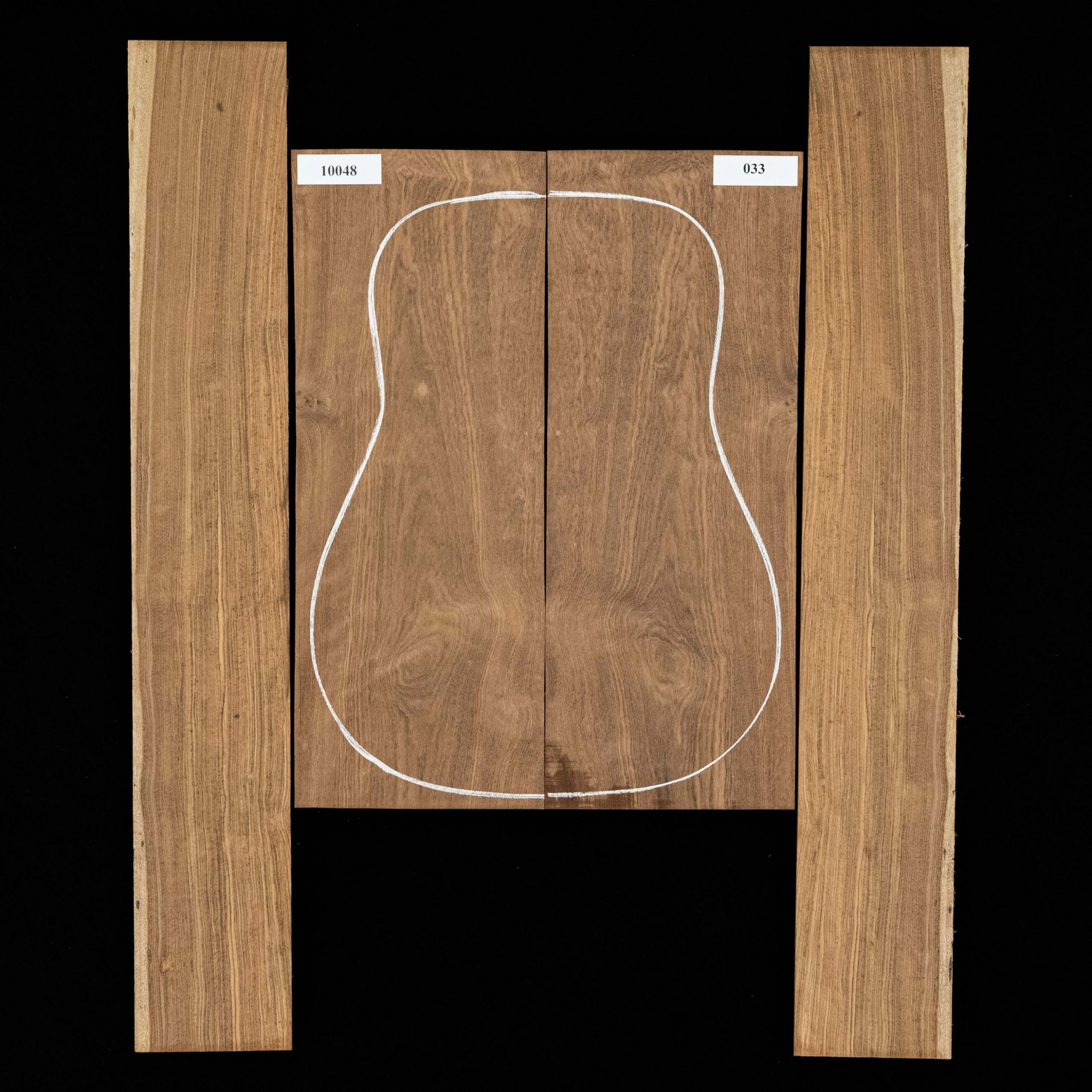 Each bookmatched back and side sets are ready for you to start your build. When joined, they are large enough for a dreadnought. Sides are unprofiled (rectangular) and unbent. Kiln-dried.