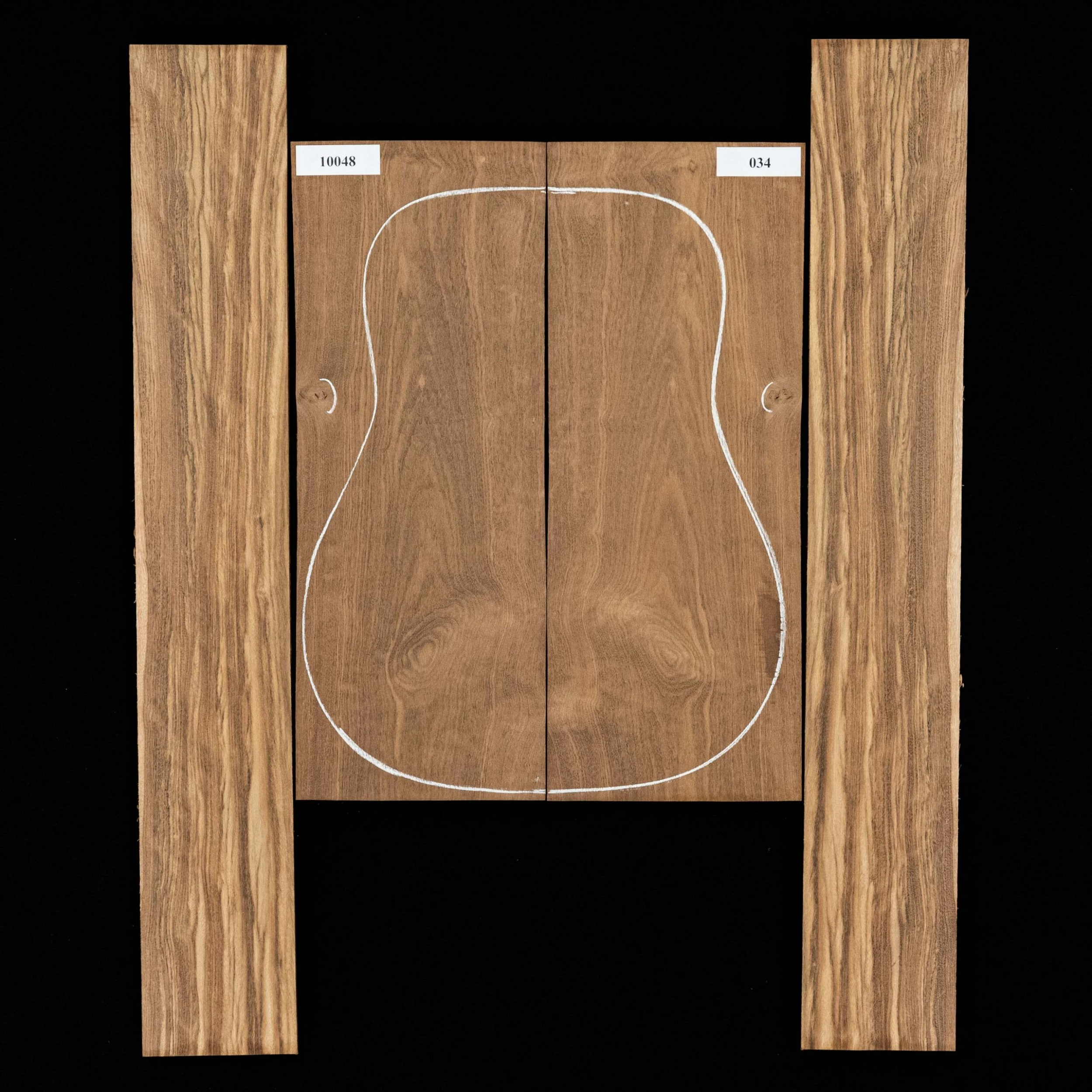 Each bookmatched back and side sets are ready for you to start your build. When joined, they are large enough for a dreadnought. Sides are unprofiled (rectangular) and unbent. Kiln-dried.