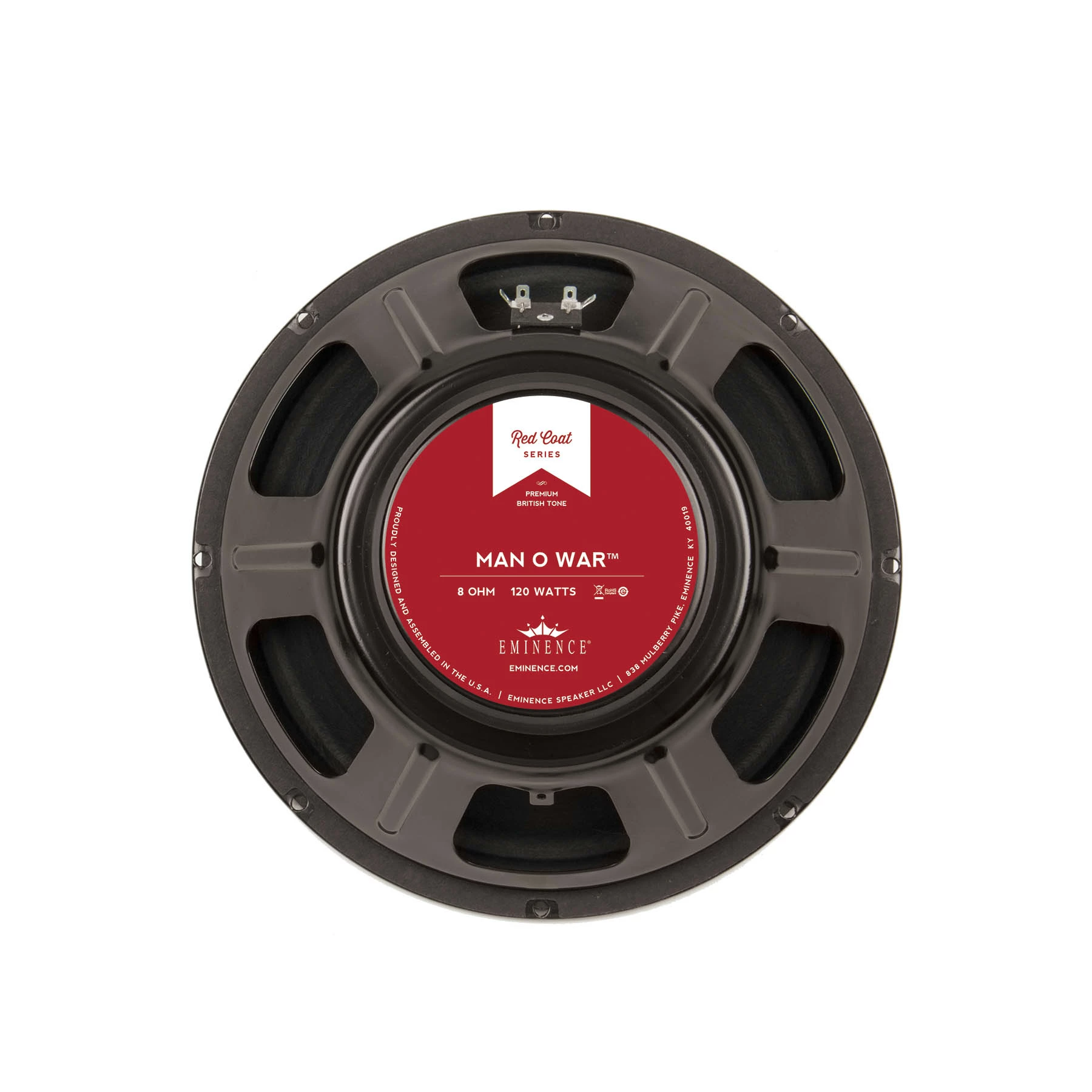 The Eminence Man O War guitar speaker is the work horse of tone. A proven and revered sound, very loud and responsive/articulate in every register. Chunky, solid low end and crisp mids and highs.