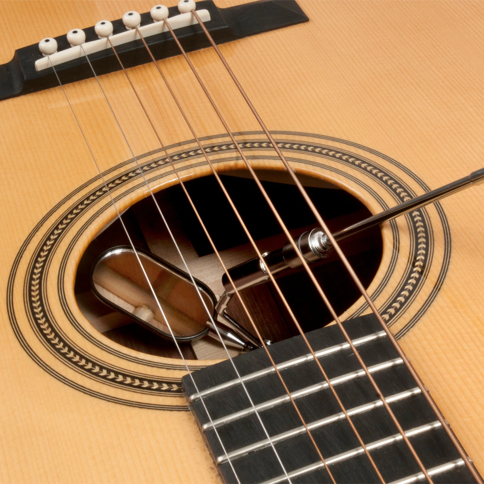 This versatile tool is a combination LED mini flashlight and handy swivel-jointed mirror attachment that adjusts in any direction. It telescopes waaaaay out, to let you illuminate and inspect areas deep inside large instruments where most mirrors can’t reach. It’s slim enough to fit into mandolin and uke soundholes, too—one tool does it all. The reliable lifetime LED light reflects off the mirror to shine where you need it. Easily detach the mirror to use the tool as a standalone flashlight. Convenient pocket clip included.
