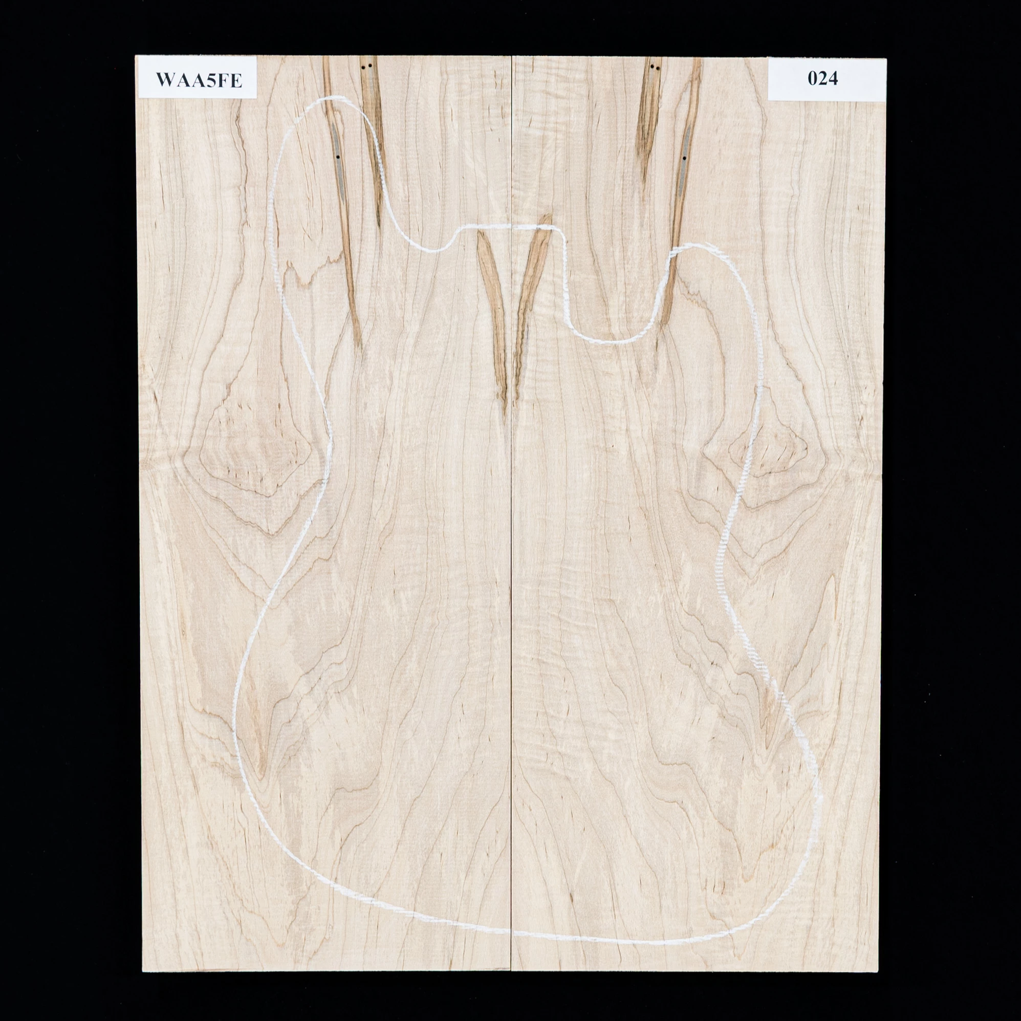 Used for both lam tops and carved tops, Ambrosia Maple is an excellent wood both for its workability and tonal properties. It works well with hand or power tools. Care must be taken on highly figured pieces to limit chip out, but razor-sharp cutters and light passes usually prevent these issues.