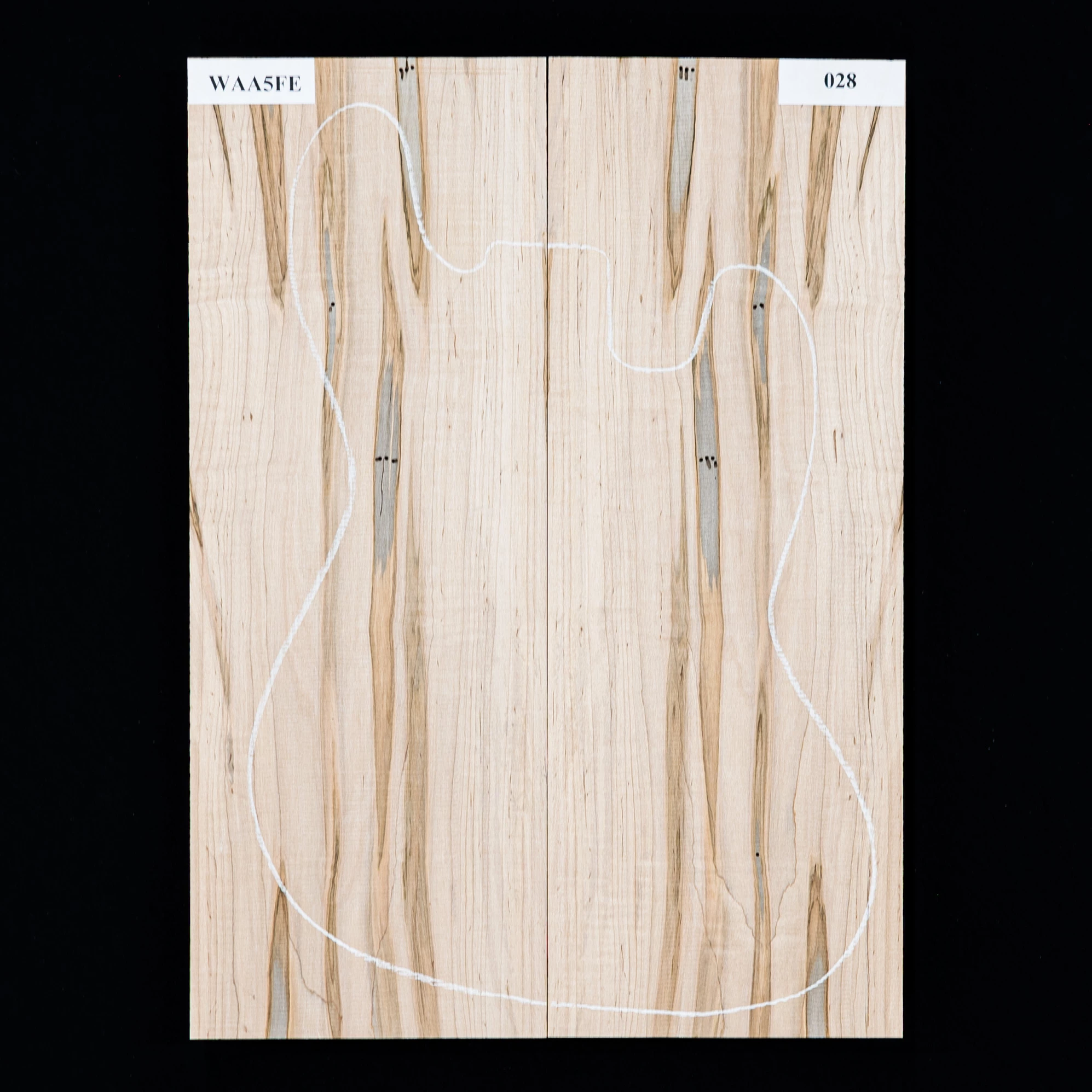 While Ambrosia Maple shares the same species with other well-known maple tonewoods, it’s the look that sets this wildly uncommon wood apart from quilted or flamed varieties. The one-of-a-kind patterning is the result of tunneling by tiny Ambrosia Beetles. Fungus that grows in the tunnels causes beautiful streaks of blue, gray, and brown. The beetles and fungus don’t affect the structural integrity of the wood, and the drying process terminates any remaining beetles or fungus.