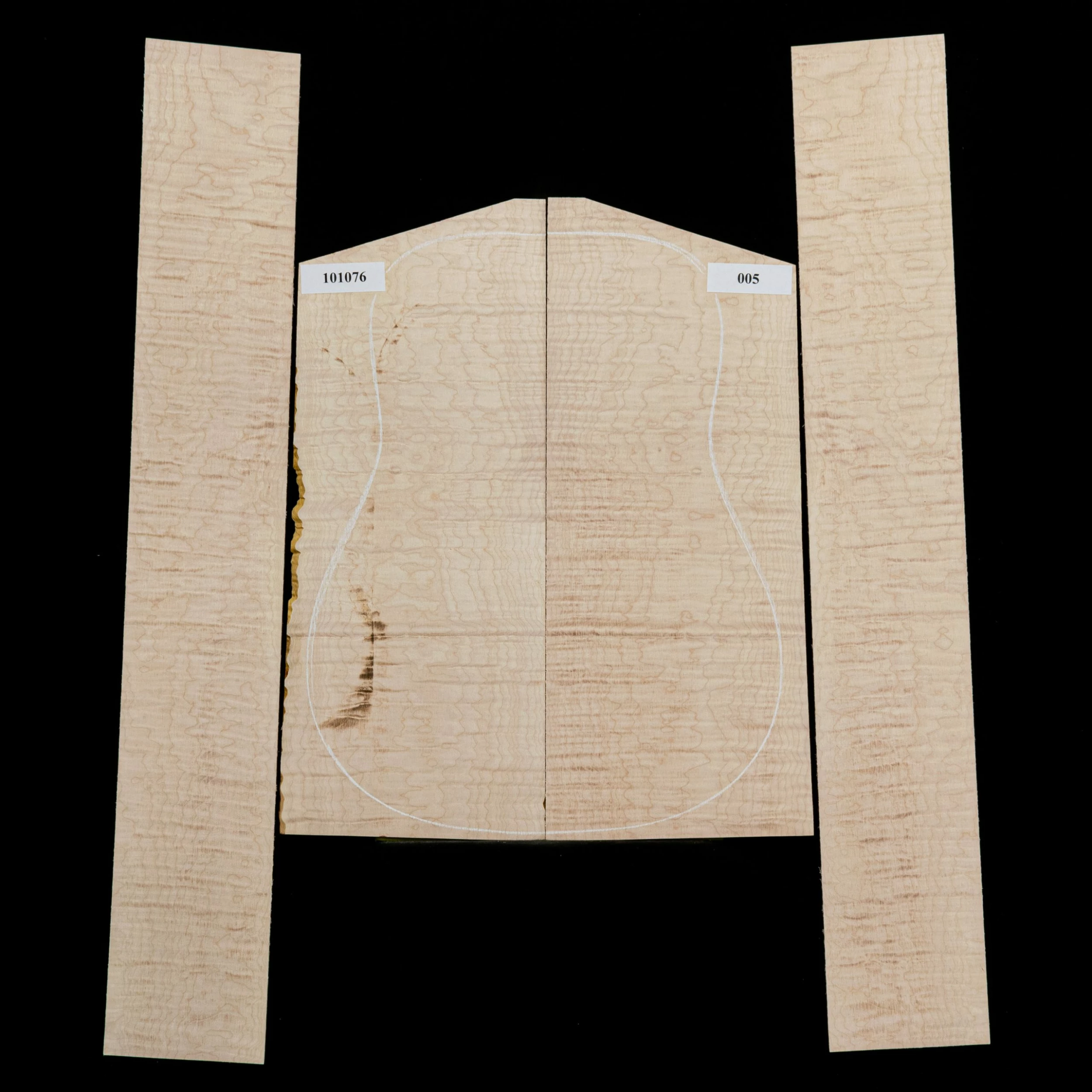 Each bookmatched back and side sets are ready for you to start your build. When joined, they are large enough for a dreadnought. Sides are unprofiled (rectangular) and unbent. Kiln-dried.