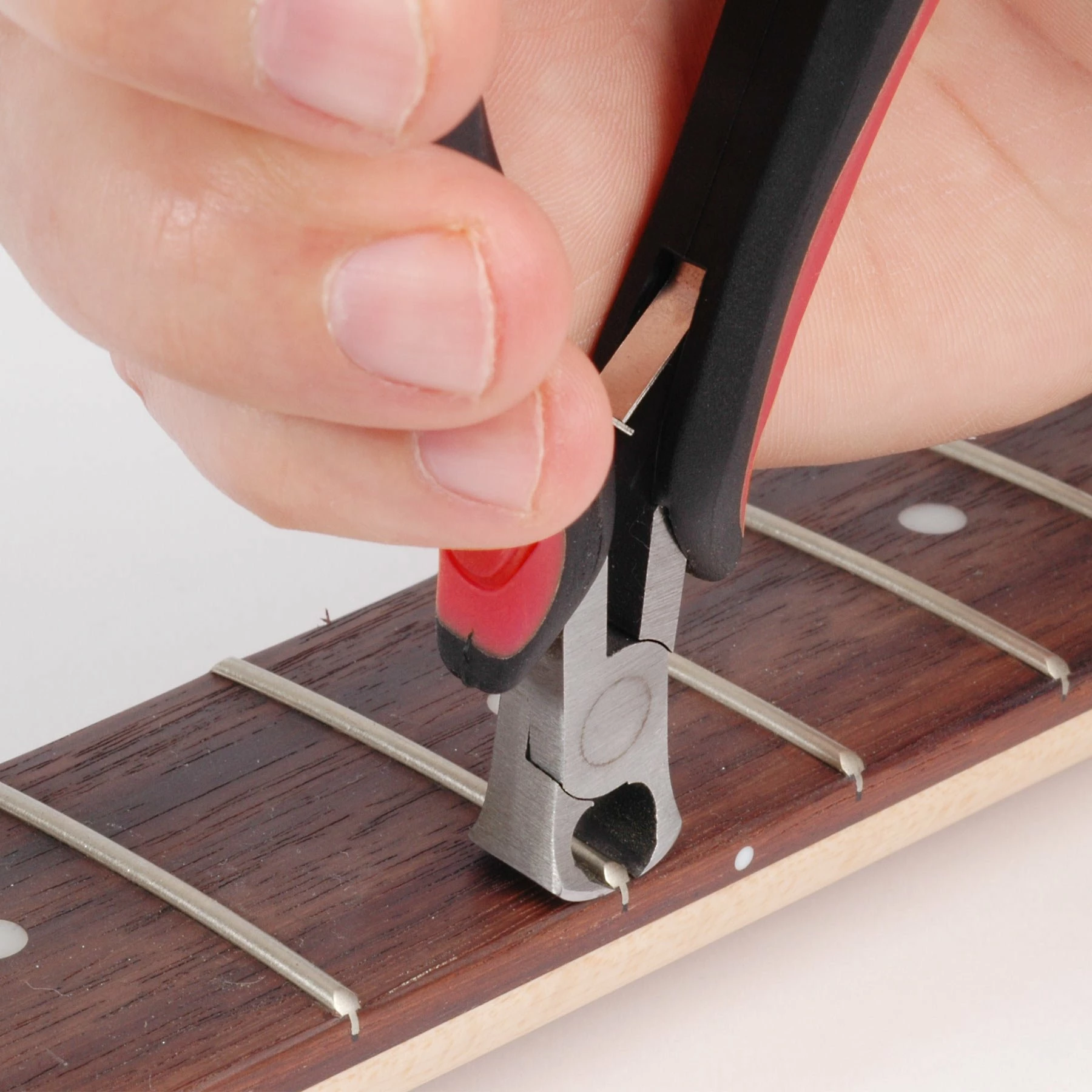 It helps reduce wood chip-out, and does a better job of getting under frets and lifting them than wider cutters. Comfortable rubber-coated handles.