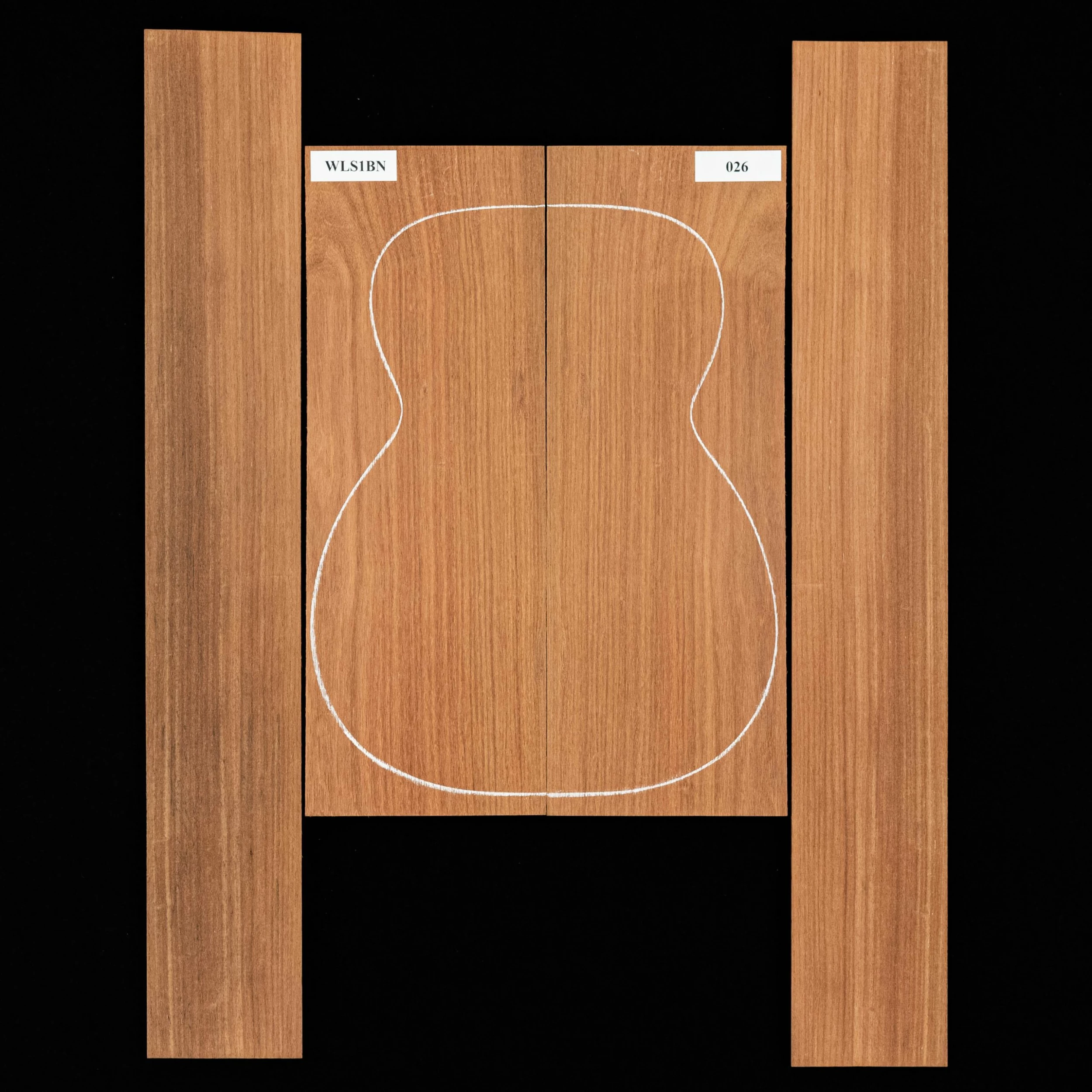 Each bookmatched back and side sets are ready for you to start your build. When joined, they are large enough for an OM-sized or smaller guitar. Sides are unprofiled (rectangular) and unbent. Kiln-dried.