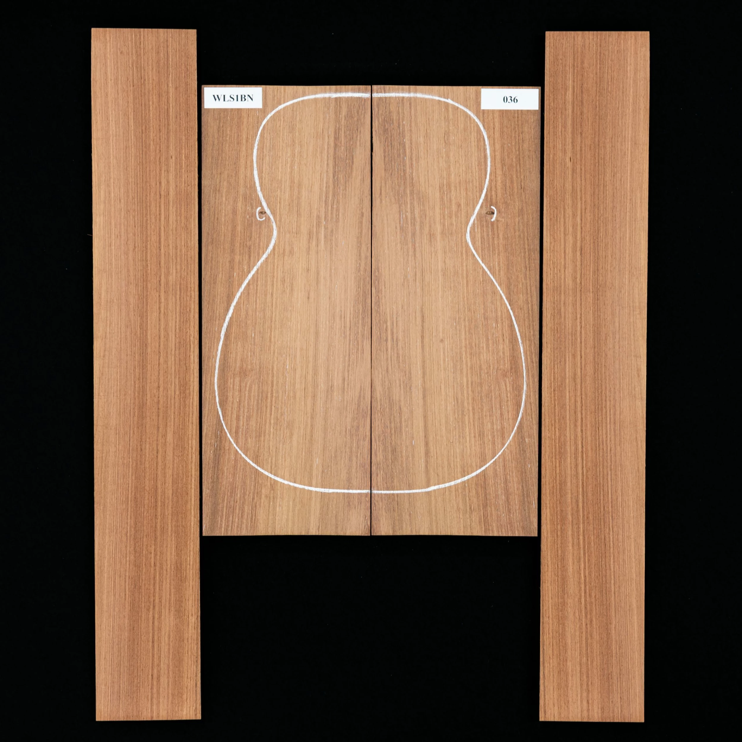 Each bookmatched back and side sets are ready for you to start your build. When joined, they are large enough for an OM-sized or smaller guitar. Sides are unprofiled (rectangular) and unbent. Kiln-dried.