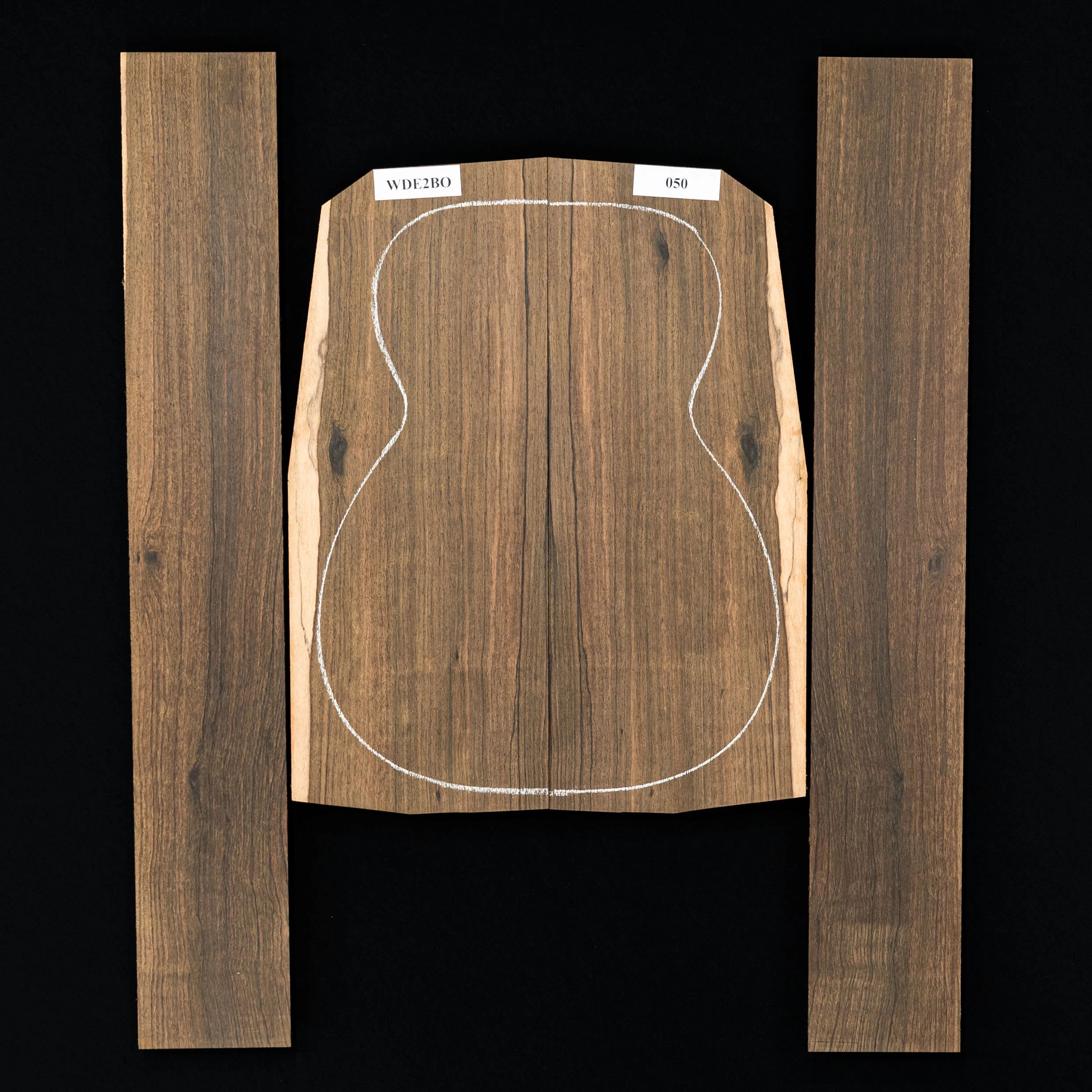 Malaysian Blackwood is a member of the ebony family, but unlike other ebonies, it has extremely beautiful color variations that range from blacks, browns, greys and greens with striking sandy colored sap wood. Visually each set is unique and complex variegation is common in these sets.