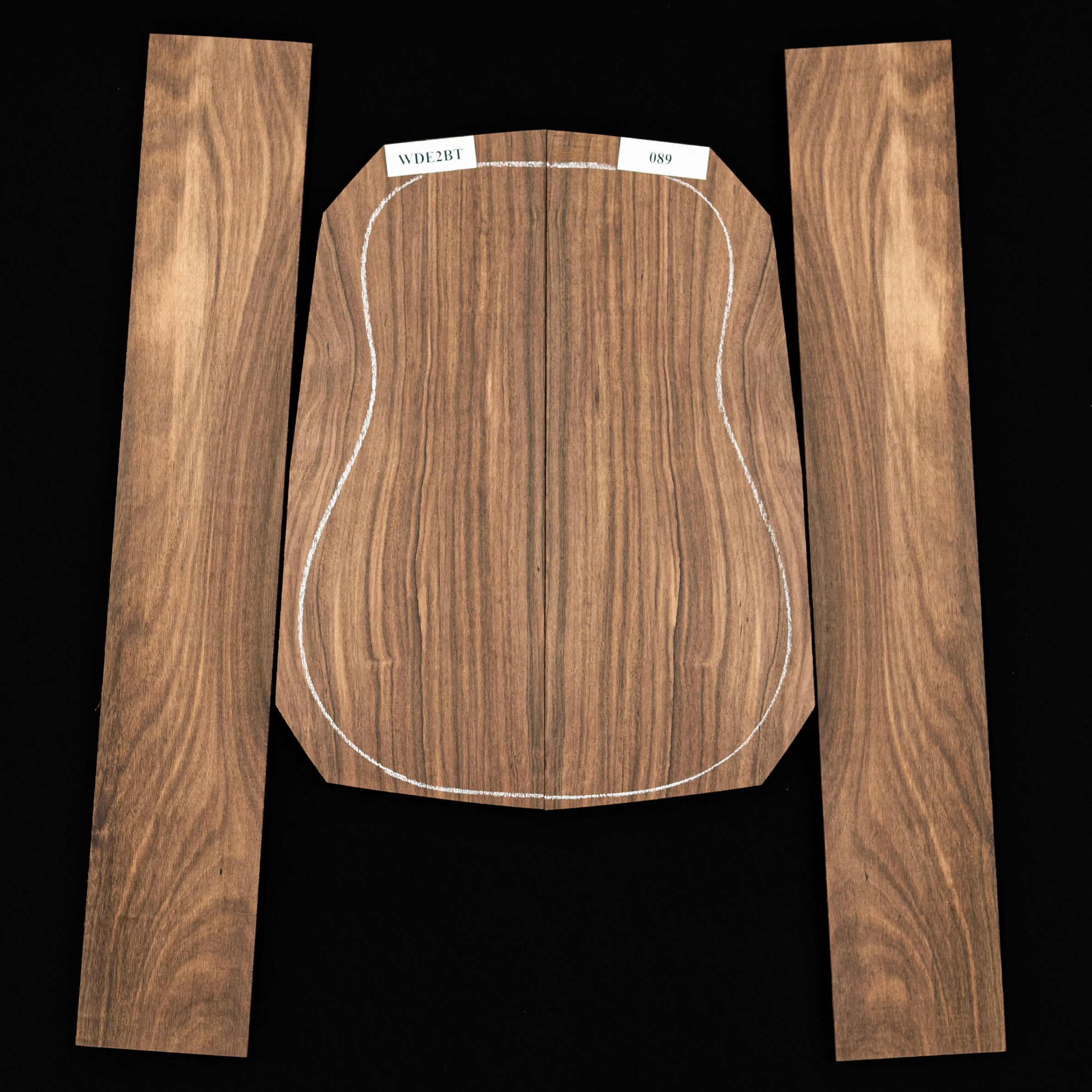 Malaysian Blackwood is heavy and can be brittle across the grain so care should be taken to prevent cracking. It bends relatively easily and machines very cleanly with conventional methods. We also recommend using epoxy vs. hide glue or traditional wood glues to join the back plate.