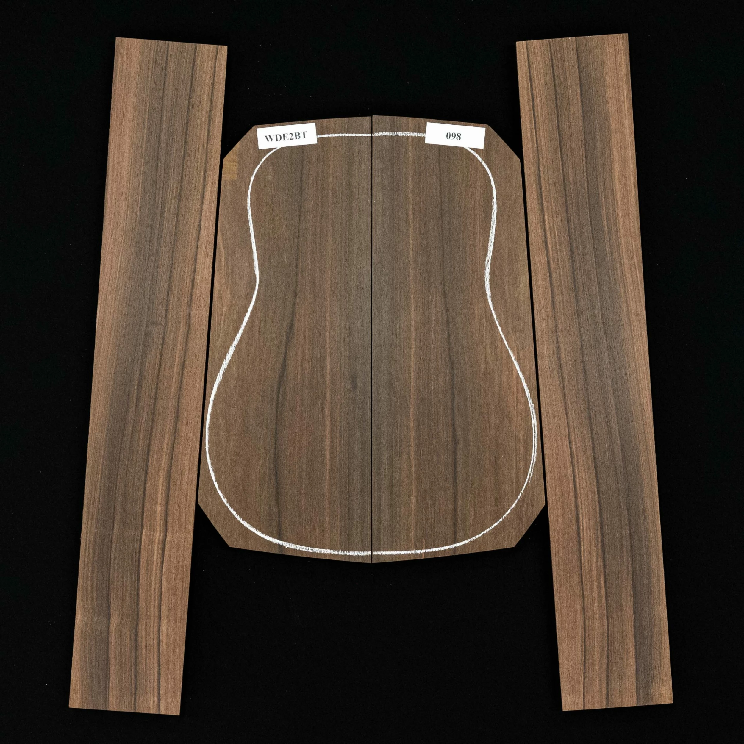 Malaysian Blackwood is a member of the ebony family, but unlike other ebonies, it has extremely beautiful color variations that range from blacks, browns, greys and greens with striking sandy colored sap wood. Visually each set is unique and complex variegation is common in these sets.