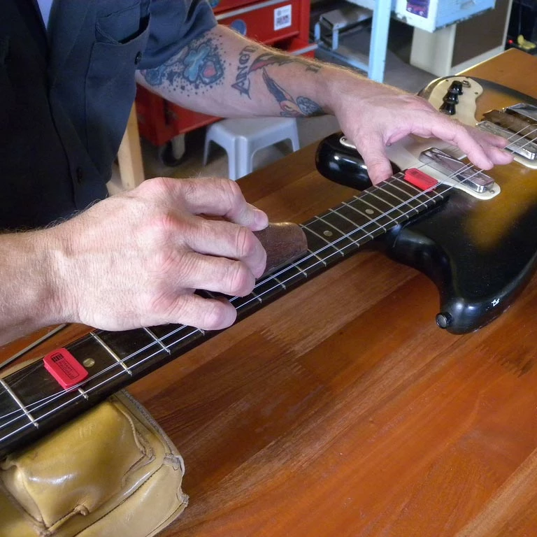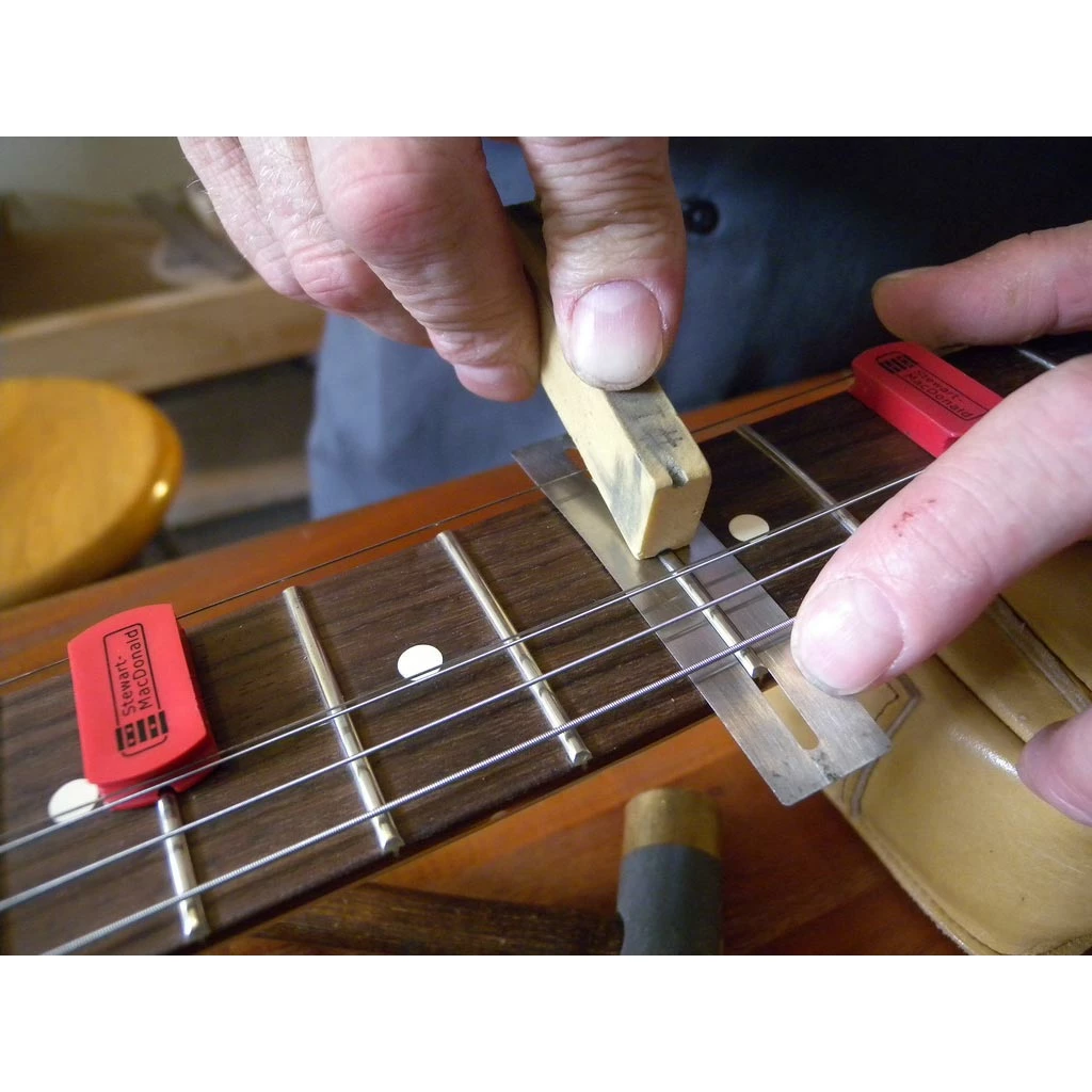 “I needed something quick and easy, to do anything from cleaning a fretboard to working on a fret buzz — or gluing down a loose fret — without taking the strings off. I can work on a trouble spot and keep checking that the neck is playing well, without winding tension off the strings and back on again. That saves a lot of time and energy. A big thank you to StewMac for making this little time saving tool.”