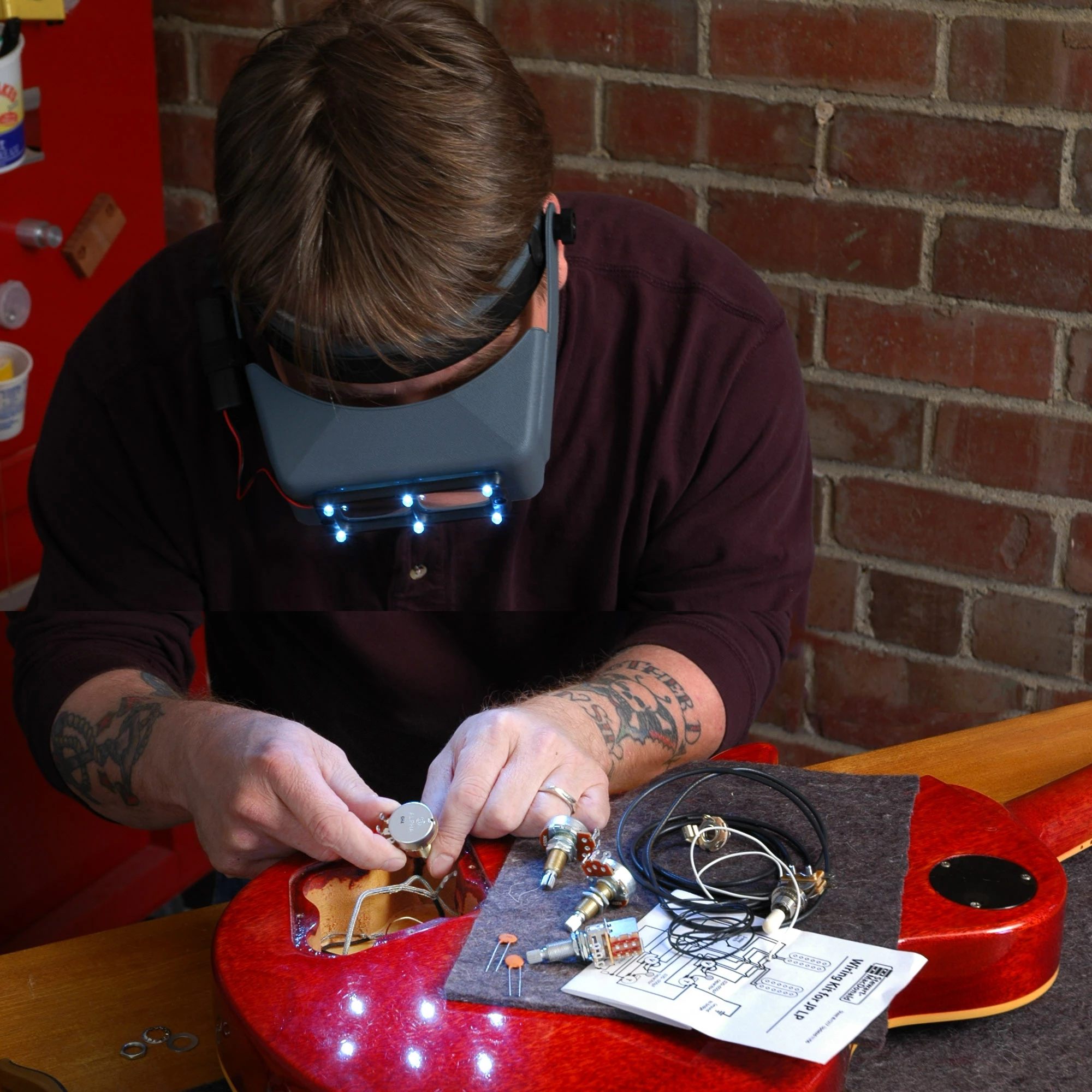 See better to do better work! The OptiVISOR flip-up magnifier frees both hands for inlaying, wiring, fret dressing and other close work.