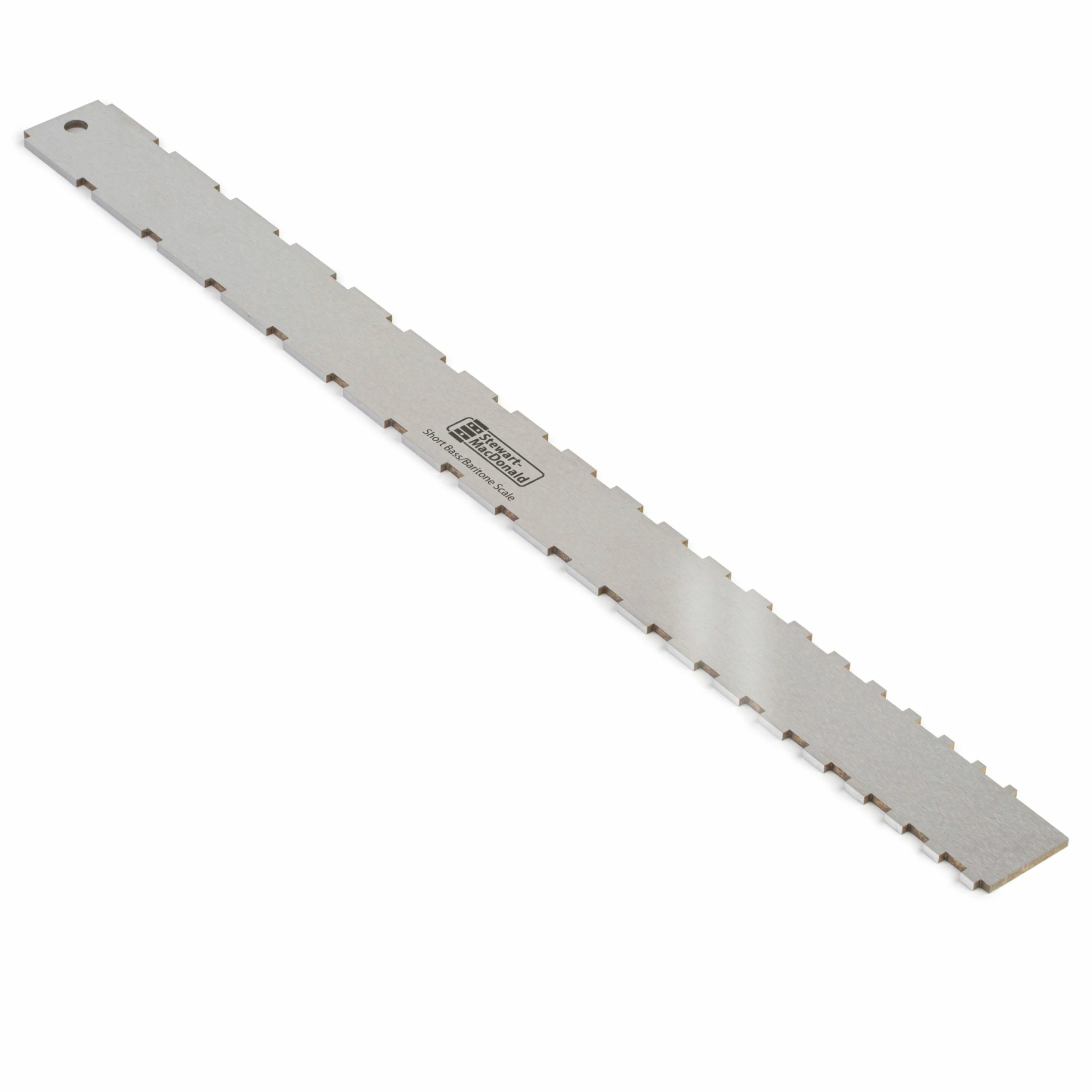 One edge fits Fender Bajo Sexto 30.2″ scale, Gibson EB 30.5″ scale, plus Fender 30″ short-scale bass and Danelectro 30″ baritone scale. The other edge fits Fender’s Baritone Custom Jaguar 28.5″ scale, Eastwood’s 28″ scale and custom baritone scales falling between 28″ and 28.5″.