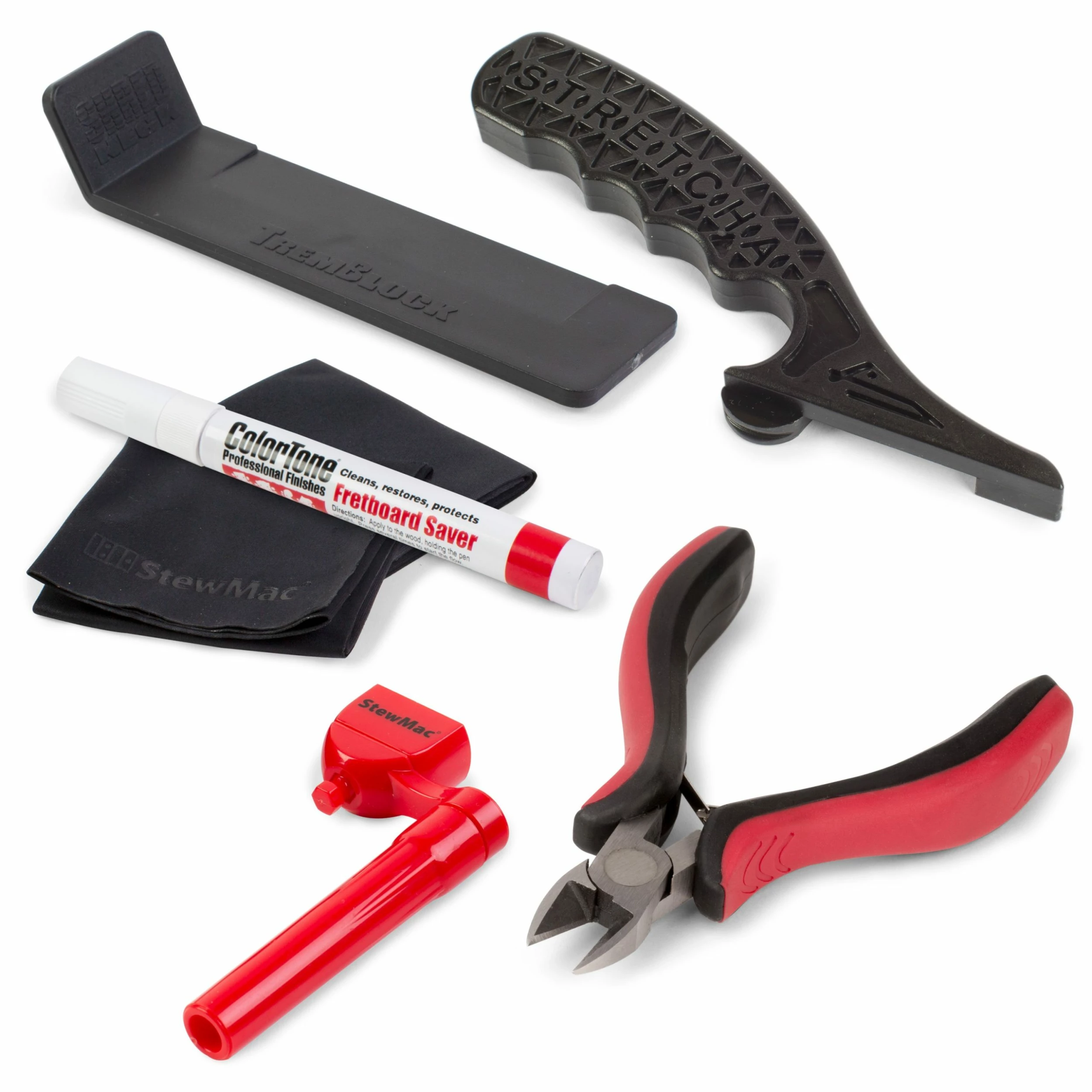 In this set you’ll get our professional String Cutter to easily cut your strings right to the post, String Winder to tune up fast, ColorTone Fretboard Saver to quickly clean and protect your board, the String Stretcha to get strings in tune fast, and two Polishing Cloths to keep every part of your guitar clean.