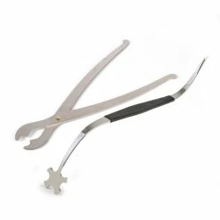 Essential tools for correctly placing a soundpost into a violin or viola, while you work through the treble f-hole.