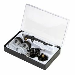 The 10′ flexible hose gives you a full range of motion and the 1/4″ NPT threads connect easily to most standard hose fittings. This set includes everything you need to hook up to your compressor and spray at 15-60 psi. The siphon-feed airbrush has a 0.4mm nozzle and an adjustable fluid cap.