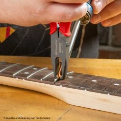 Our team has assembled everything you need to do the job safely with our Fret Pulling Set. The set includes the Fret Heater, Soldering Iron, Precision Fret Puller, and Chip Stoppers, all designed by our master fretters. You’ll be ready to tackle any fret work with confidence.