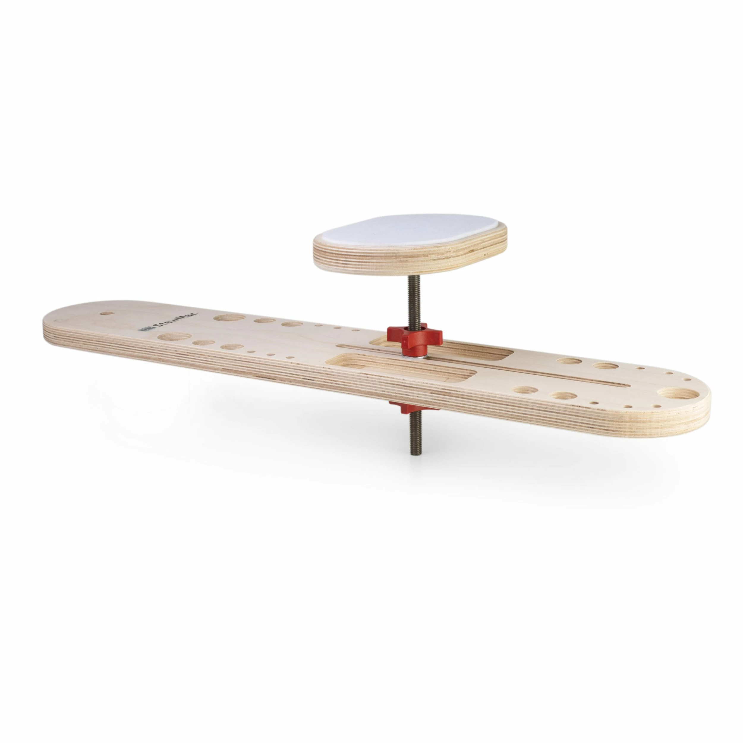 The Body Board lets you access instruments at any angle, supports your work, and keeps the guitar safe from cluttered benches.