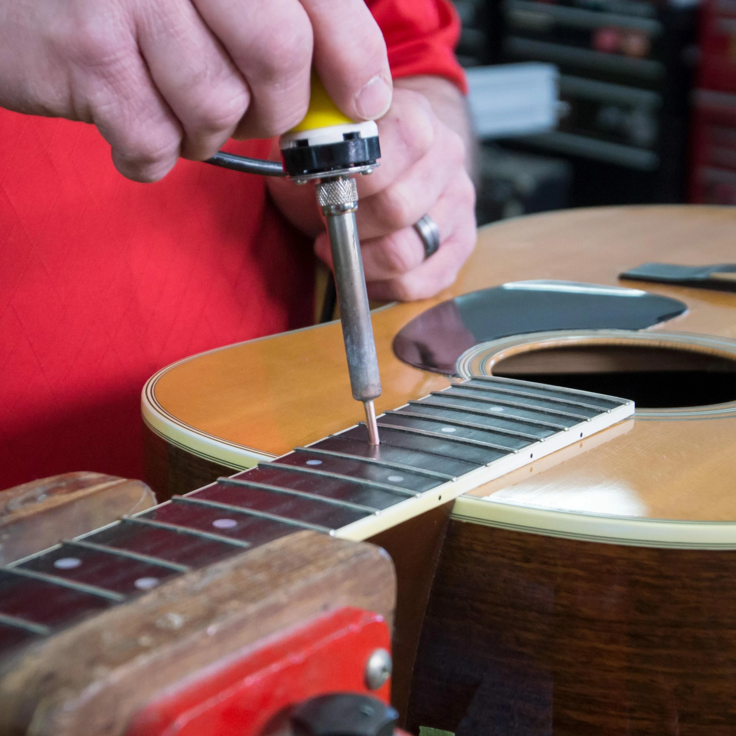 The HeatStick™ uses the heat of your soldering iron to soften the glue in a guitar’s neck joint for removing the neck.