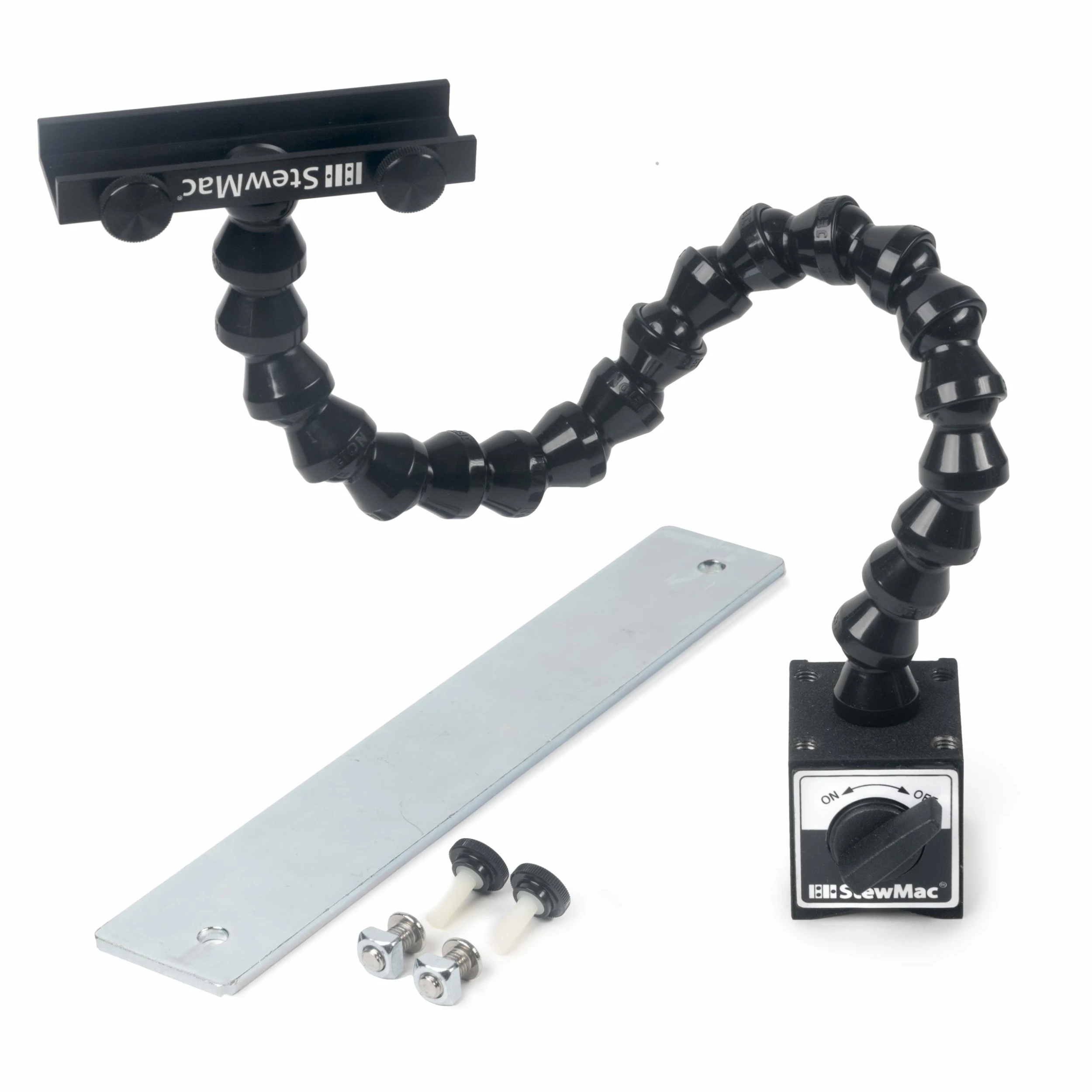 This light works with more than just the Neck Jig. The magnetic base attaches quickly and easily to nearly any metal surface—and the magnet turns on and off with a simple switch. No need to drill mounting holes! Add one to your drill press, band saw, or even make it a bench light by attaching the included mounting plate to your wall. Now you can have an adjustable, ultra-bright light anywhere in your shop.