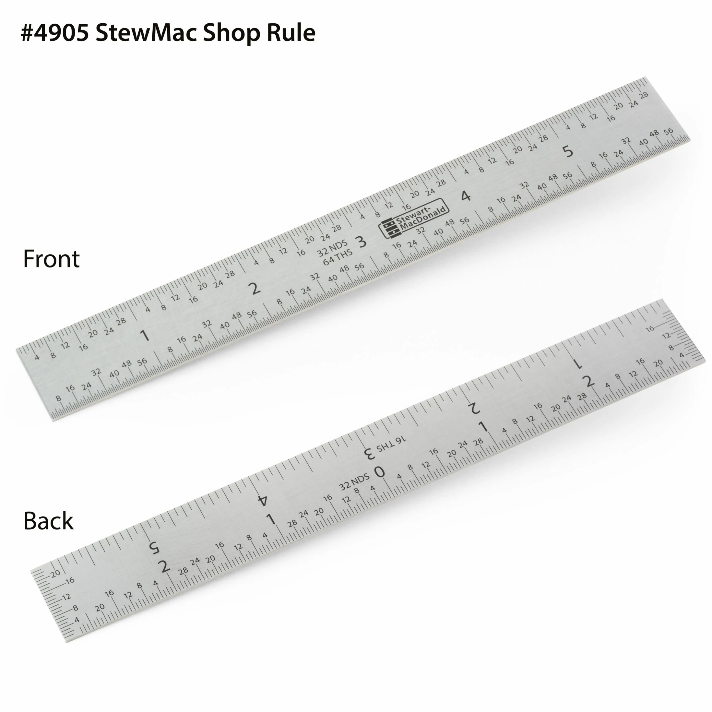 Our Shop Rule is a 6-inch (152mm) precision steel rule designed specifically for instrument work. The satin chrome finish allows for easy marking with a pencil and the sharp black etching is easily viewed even in low light conditions. Each end of our Shop Rule includes small vertical rulers—perfect for measuring the saddle, nut, or pickup height. In addition, our Rule has a zero at the center, which eliminates guesswork when trying to find the center of the neck, bridge, or saddle. It’s a tool we reach for constantly.